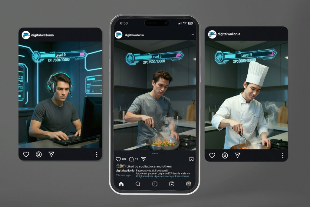 sur les réseaux sociaux pour la campagne Pause numérique pour Digital Wallonia.